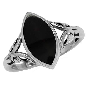 Silvershake 14x7MM Natural Marquise Shape Black Onyx 925 Sterling Silver Filigree Ring