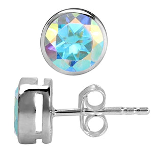 Silvershake 2 CTW 6MM Genuine Round Shape Mercury Mist Aurora Borealis (AB) Topaz 925 Sterling Silver Bezel Set Stud Gemstone Earrings for Women or Teens