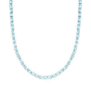 Here, 45.00 ct. t.w. oval sky blue topaz beams their heavenly shade in polished sterling silver. Figure 8 safety. Box clasp, sky blue topaz tennis necklace. Each Ross-Simons item arrives in a fine jewelry presentation box. Shop Ross-Simons jewelry risk-free as all items include a 30-day, 100% money-back guarantee. Color: Sky Blue Topaz.
