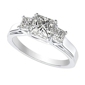 Features of 1 Carat 3 Three Stone Princess Diamond Engagement Ring 14K White Gold I-J Color I1-I2 Clarity
