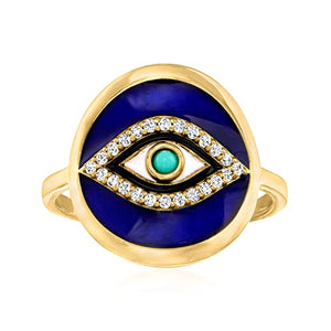 Features of Ross-Simons 0.10 ct. t.w. White Topaz and Multicolored Enamel Evil Eye Ring With Turquoise in 18kt Gold Over Sterling
