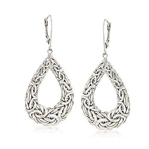 - STERLING SILVER — Sterling silver Byzantine open teardrop earrings. Polished finish. 2 1/8 in. hanging length, 1 in. wide. 9.1 grams. Leverback backings.