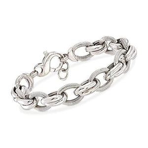 Pulsera de eslabones ovalados texturizados y pulidos de plata esterlina italiana de Ross-Simons. 8,5 pulgadas