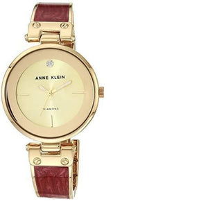 Reloj tipo brazalete con detalles de diamantes en tono dorado y marmoleado burdeos AK/2512BYGB de Anne Klein para mujer