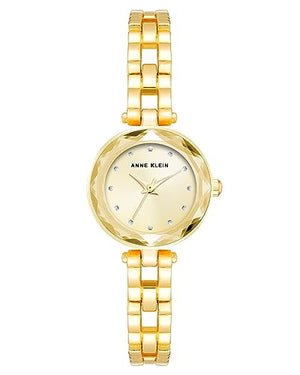 Experimente el encanto del reloj de pulsera abierto con detalles de brillo dorado para mujer de Anne Klein y haga que cada momento brille con elegancia.