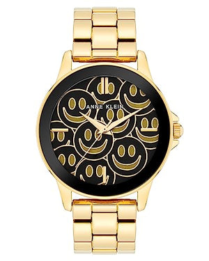 Reloj de pulsera con esfera sonriente en dorado y negro para mujer de Anne Klein: adopte la elegancia alegre