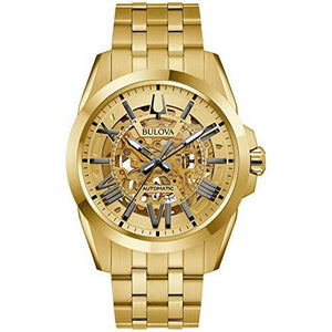 Reloj automático Bulova Shutton con esfera esquelética dorada para hombre 97A162
