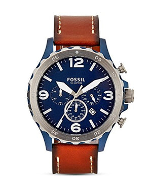Reloj cronógrafo de cuarzo de cuero Nate de Fossil para hombre, color: plateado/azul, marrón (modelo: JR1504)