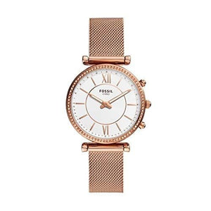 Reloj inteligente híbrido de malla de acero inoxidable Carlie de Fossil para mujer de 36 mm, color oro rosa (modelo: FTW5060)