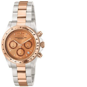 Una sofisticada combinación de tonos oro rosa y plata, el reloj cronógrafo Invicta Speedway para hombre en oro rosa ofrece una versión fresca y deportiva de un diseño clásico.