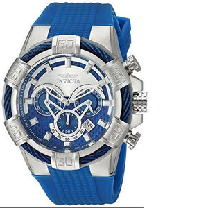 Reloj de cuarzo de acero inoxidable Invicta Bolt para hombre con correa de silicona, azul, 32 (modelo: 24696)