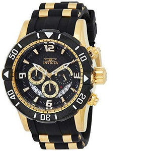 Sumérgete en cualquier horizonte con la guía firme de este Invicta Pro Diver negro y dorado.