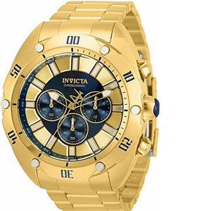 Esfera dorada (centro azul) realzada por luminosas manecillas doradas. Caja de acero inoxidable dorada con una correa de acero inoxidable dorada. Movimiento de cuarzo. Resistencia al agua de 100 metros/330 pies. Bisel fijo. Cristal Flame Fusion. Fondo de caja macizo. Cierre plegable con botón pulsador. Corona atornillada. Tamaño de la caja 50 mm x 18 mm. Correa 26 mm x 7,25 pulgadas de largo. Invicta Venom la envidia de los demás. Reloj Invicta 33743 Venom. Color: Dorado. COMPRE LOS MEJORES RELOJES INVICTA HACIENDO CLIC EN AMAZON PARA COMPRAR EN LÍNEA.