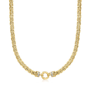 Collar bizantino plano de oro amarillo de 14 kt de Ross-Simons con detalles de diamantes. 16 pulgadas