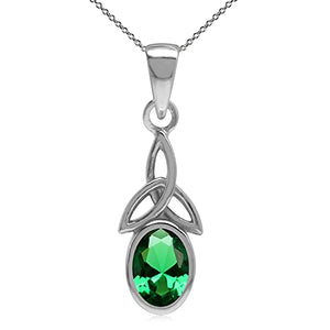 Colgante de nudo celta Triquetra de plata de ley 925 con nanoesmeralda verde creada por Silvershake con collar de cadena de 18 pulgadas
