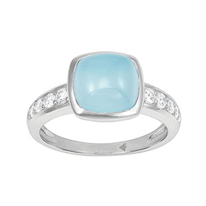 Delicadas filas de circonitas cúbicas: para agregar un toque de brillo, delicadas filas de acentos de circonitas cúbicas rodean la calcedonia. Cada detalle es un toque de brillo que crea una sinfonía visual de elegancia.