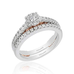 Anillo nupcial con concha de Ariel y diamantes de 1/2 ct de Jewelili Enchanted Disney Fine Jewelry en oro blanco y rosa de 14 quilates