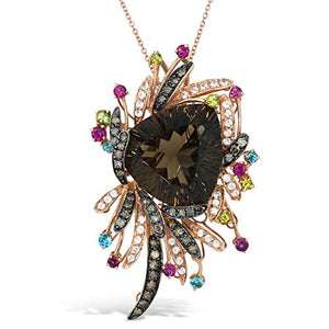Collar con colgante de 18" de LeVian en oro rosa de 14 quilates, cuarzo ahumado de talla trillón, diamantes chocolate de 2/3 quilates y gemas semipreciosas (color marrón elegante, claridad SI1-SI2)