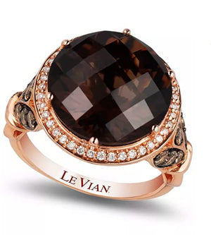 ANILLO LeVian Chocolate Cuarzo Chocolate y Diamantes Blancos Oro Fresa 14 KT, 100% AUTÉNTICO A estrenar con etiquetas.