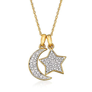 Collar con dije de estrella y luna de diamantes pavé de 0,10 ct. de Ross-Simons en oro amarillo de 14 kt. 20 pulgadas