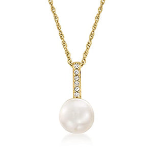 Collar con colgante de perlas cultivadas de 6-6,5 mm y detalles de diamantes de RS Pure by Ross-Simons en oro amarillo de 14 kt. 18 pulgadas
