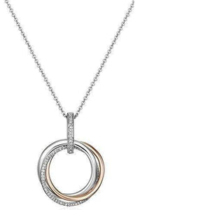 Collar con colgante circular de diamantes de oro rosa de 14 quilates sobre plata de Jewelili que presenta un trío de círculos abiertos con detalles de diamantes en la asa y el colgante.