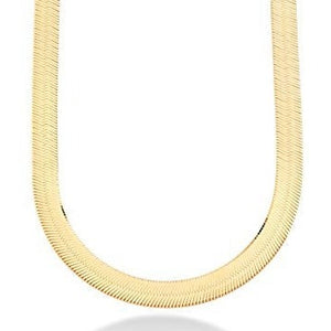 Añade un toque de lujo con esta atrevida cadena de espiga de oro amarillo de 18 quilates sobre plata esterlina. Los eslabones pulidos entrelazados, suaves y sedosos, quedan planos sobre el cuello para formar un diseño sofisticado y único con un brillo resplandeciente. Esta gruesa cadena es fuerte, flexible y cómoda para el uso diario. Un collar llamativo, lujoso y atemporal que eleva instantáneamente un look casual o un atuendo elegante, y aporta elegancia moderna a tu look diario. Úsalo solo o en capas con otras cadenas. Úsalo solo o en capas con otros largos para hacer una declaración. Queda plano, suave y cómodo sobre el cuello. Hecho en Italia