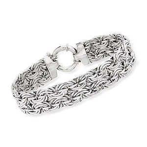 Características de la pulsera bizantina ancha de plata esterlina de Ross-Simons. 7 pulgadas