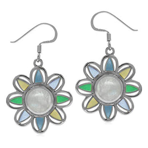 Pendientes colgantes estilo bohemio con flores de nácar y piedra lunar arcoíris de plata de ley 925 de Silvershake