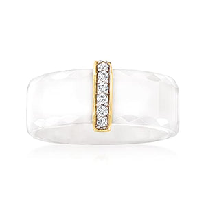 Anillo de cerámica blanca y diamantes de 0,10 ct. de Ross-Simons con oro amarillo de 14 kt
