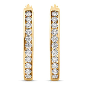 - Brillo cautivador: estos aros, bañados en oro amarillo sobre plata esterlina, cuentan con 1/4 ctw de diamantes redondos blancos naturales en un fascinante engaste de placa milagrosa, creando un brillo cautivador que realza su gracia.