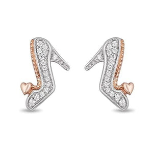 Pendientes de zapatilla de Cenicienta con diamantes blancos redondos de 1/10 ct y plata de ley y oro rosa de 10 k de Jewelili Enchanted Disney Fine Jewelry