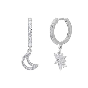¡Tendrás la luna y las estrellas a tu alcance! El brillo radiante de los detalles de circonitas cúbicas agregará un destello como el de las estrellas a tu look. Usa ambos o combina uno con otro pendiente Silpada para reflejar tu estilo individual. Las piezas vienen con sellos de plata esterlina “.925” como símbolos de calidad garantizada del producto.