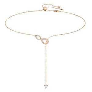 Collar en forma de Y con nudo infinito de SWAROVSKI para mujer, acabado en oro rosa, cristal blanco