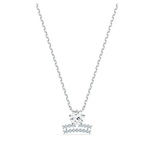 Este colgante combina la precisión y la calidad de los brillantes cristales de Swarovski con un engaste bañado en rodio y representa la armonía y el equilibrio del signo de Libra. Brillante y simbólico: con el signo del zodíaco trazado en pavé de cristal transparente y rodeando una piedra central blanca, este collar colgante incluye un cierre de barra en T que se puede usar en la parte delantera o trasera.