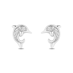 Características de los delfines juguetones de Jewelili Hallmark Fine Jewelry en plata de ley con diamantes