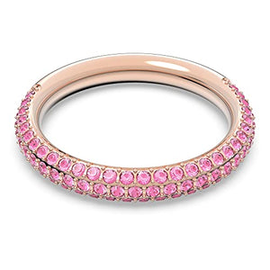 Añade un toque de brillo elegante y un sutil toque de color cautivador a todos tus looks con este mini anillo. Deslumbrantes cristales de Swarovski en color rosa adornan la banda con acabado en tono oro rosa, creando un fascinante juego de luz que te dejará hechizada.