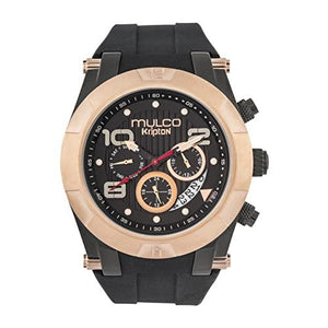 Caractéristiques de la montre à quartz multifonction Mulco Kripton Viper pour homme | Affichage analogique haut de gamme avec accents en or rose | Bracelet de montre en silicone | Montre en acier inoxydable résistante à l'eau (noir/or rose)