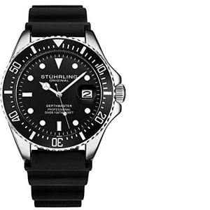 Soyez à la mode en portant cette montre de plongée Stührling noire et argentée pour homme.