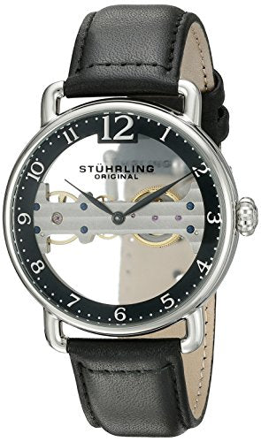 Montre mécanique à remontage manuel Stuhrling Original pour homme 976.01 Bridge en acier inoxydable avec bracelet en cuir noir