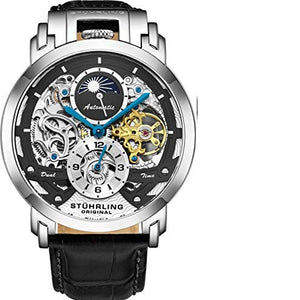 Caractéristiques de la montre automatique pour homme Stuhrling Orignal - Montre squelette pour homme - Montre habillée de luxe en cuir - Montre mécanique - Boîtier en acier inoxydable - Montre analogique à remontage automatique pour homme