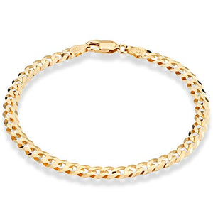 • CLASSIQUE MODERNE - Ajoutez du style à un look basique avec ce bracelet gourmette de 5 mm en or jaune massif 18 carats sur argent sterling. Nos maillons biseautés à coupe diamantée sont beaucoup plus réfléchissants que la chaîne gourmette standard pour une brillance riche et parfaite. Solide et durable pour un usage quotidien, mais pas trop épais pour un ajustement confortable. Une chaîne qui donne une élégance moderne aux tenues décontractées et formelles, portez-la seule pour un look soigné au quotidien ou associez-la à d'autres bracelets pour une déclaration de mode cool.