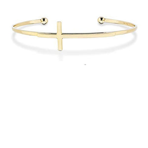 - ART ITALIEN MODERNE - CHOIX D'OR JAUNE 18 CARATS SUR ARGENT OU ARGENT STERLING PUR 925 - Fabriqué en argent sterling 925 pour donner à vos bijoux un éclat brillant. Hypoallergénique et sans nickel, il constitue un excellent choix pour les peaux très sensibles. Contrairement aux métaux bon marché, l'argent sterling n'irrite pas votre peau. Bracelet jonc, 7,25-7,5 pouces, croix centrale, 1/2 pouce de large. Ce bracelet léger est facile à ajuster à votre taille parfaite.