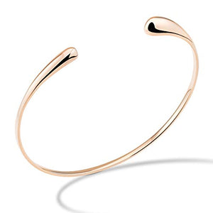 Bracelet manchette ouvert en argent sterling 925 ou or 18 carats Miabella en forme de larme pour femme, fin et réglable, fabriqué à la main en Italie (argent plaqué or rose, moyen (18,4 - 19,1 cm))