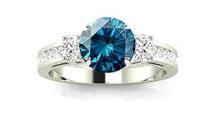 La bague de fiançailles à trois diamants sertis en canal en or blanc 14 carats de Houston Diamond District avec un centre en diamant bleu de 0,75 carat est plus qu'une bague ; c'est une expression d'élégance intemporelle, alliant sophistication et l'attrait captivant d'un diamant bleu.
