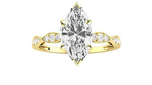 Bague de fiançailles en or jaune 14 carats avec diamant de 0,9 carat de taille marquise incurvée (couleur GH, pureté VS1-VS2, centre de 0,75 ct)