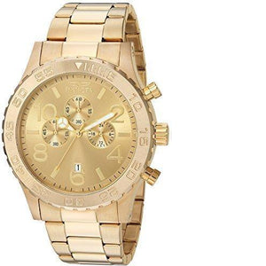 Montre chronographe à quartz Invicta Specialty en acier inoxydable doré pour homme, or (modèle : 1270) ; cadran champagne rehaussé d'aiguilles lumineuses. Boîtier en acier inoxydable doré jaune avec bracelet en acier inoxydable doré jaune. Mouvement à quartz. Étanchéité à 50 mètres/165 pieds. Lunette unidirectionnelle dorée jaune. Cristal Flame Fusion. Fond de boîtier massif. Déploiement avec fermoir de sécurité. Taille du boîtier 50 mm x 13 mm. Bracelet 26 mm x 10 pouces de long. Montre Invicta 1270 Elegant Ocean.