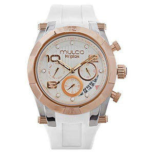 Montres Mulco pour femmes Kripton Lady, boîtier de 42 mm, montre à quartz analogique, accent de montre en or rose avec finition nacrée, résistante à l'eau, bracelet en silicone blanc