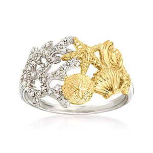 Bague Ross-Simons en argent sterling et or 18 carats avec diamants de 0,10 ct. tw et vie marine