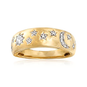 Bague lune et étoile en or 18 carats sur argent sterling avec diamants de 0,15 ct. tw de Ross-Simons